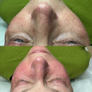 Недавно удаляла сосуды с помощью лазера. Прошло несколько дней, результаты впечатляющие. Было страшновато, думала будет больно. Но процедура оказалась терпимой и комфортной. Врач Алла Александровна Легун рассказала о возможных причинах появления таких проблем с лопнувшими сосудиками, посоветовала профилактику. Спасибо ей, буду внимательнее относиться к своему здоровью. По фото заметно насколько эффективна процедура. Довольна очень, действительно работает